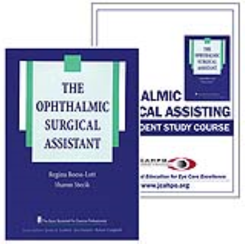 , by Boess-Lott and Stecik and the Independent Study Course quiz. The text contains basic guidelines and typical scenarios that the ophthalmic surgical assistant needs to know and helps prepare the ophthalmic assistant for any setting, whether it be hospital or office based. The quiz includes 60 quiz items that test comprehension, a study plan that outlines the text's most important content, and study hints.